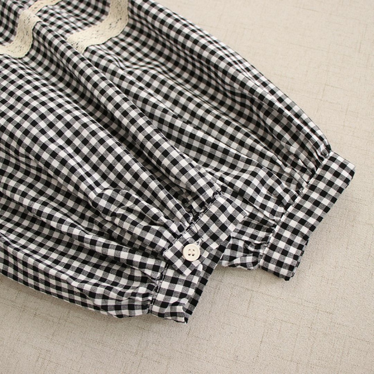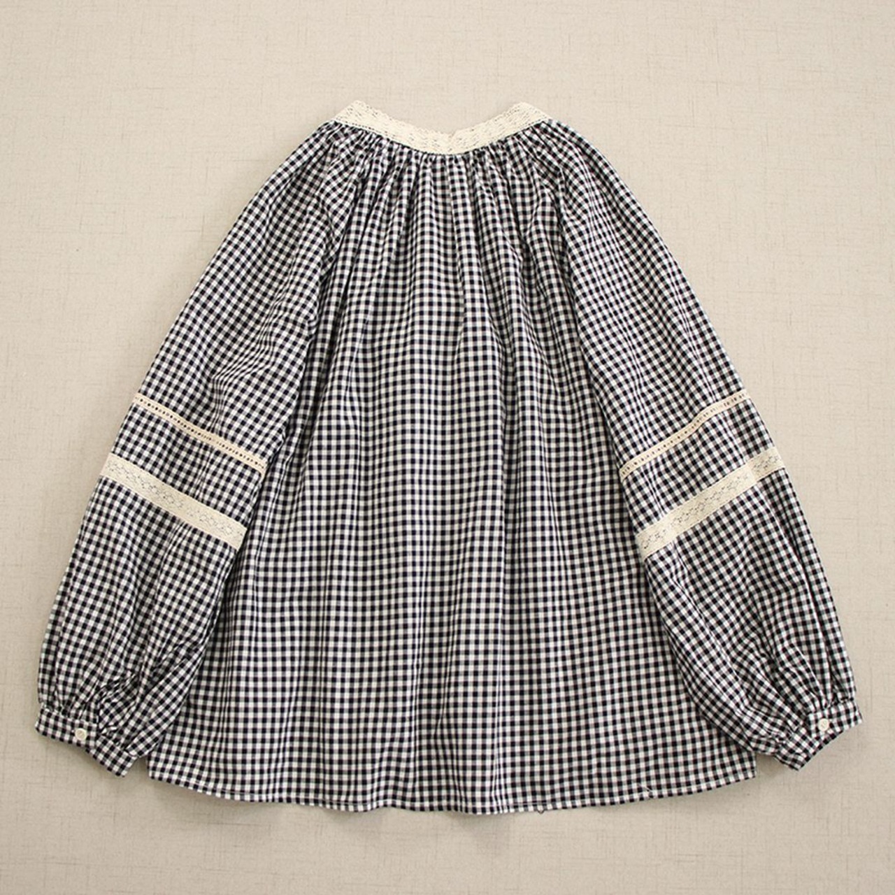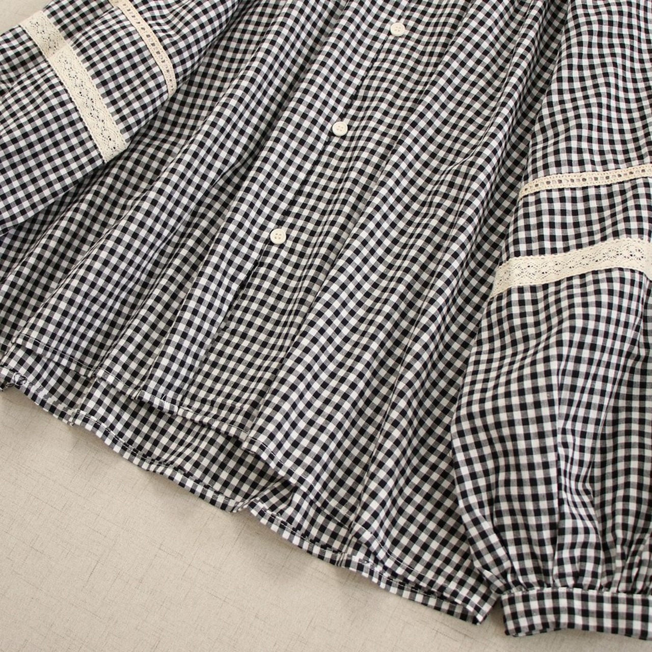 ギンガムチェックにレーステープの可愛らしいギンガムチェックラウス。