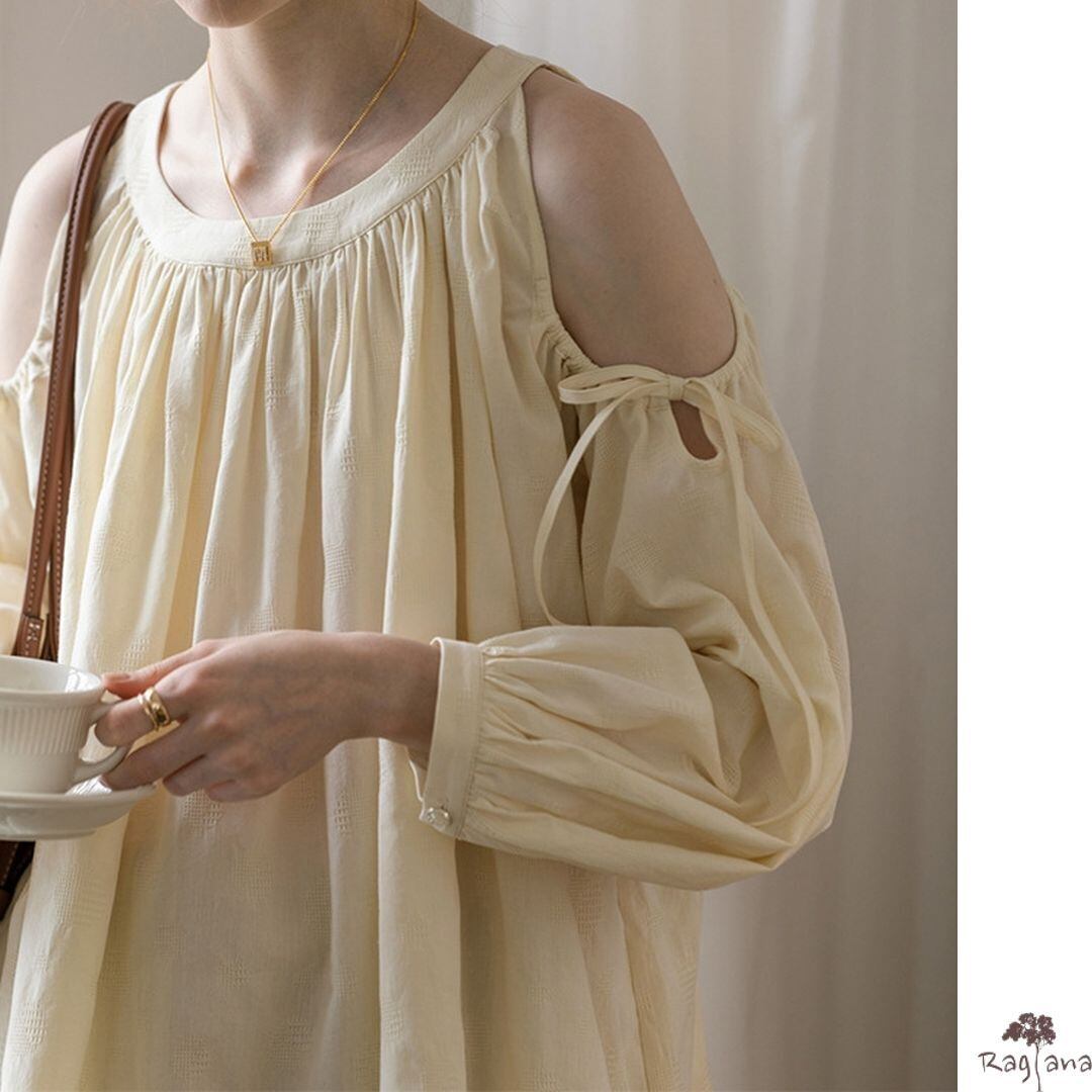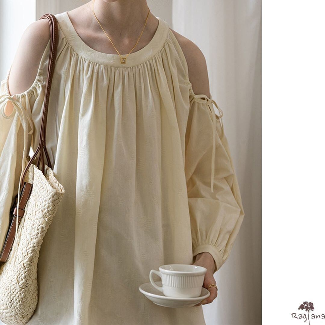 抜け感のある肩見せのブラウス。