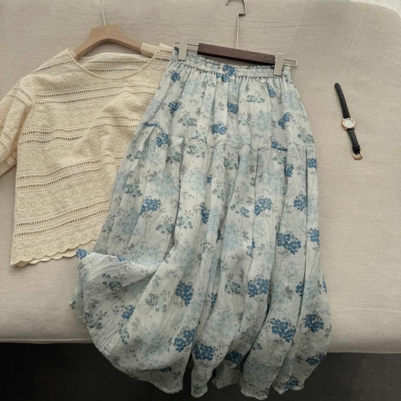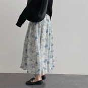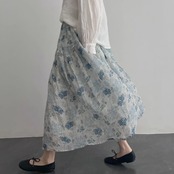 ブルーの花柄が可愛らしいAラインスカート♪