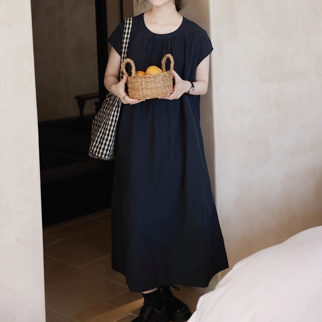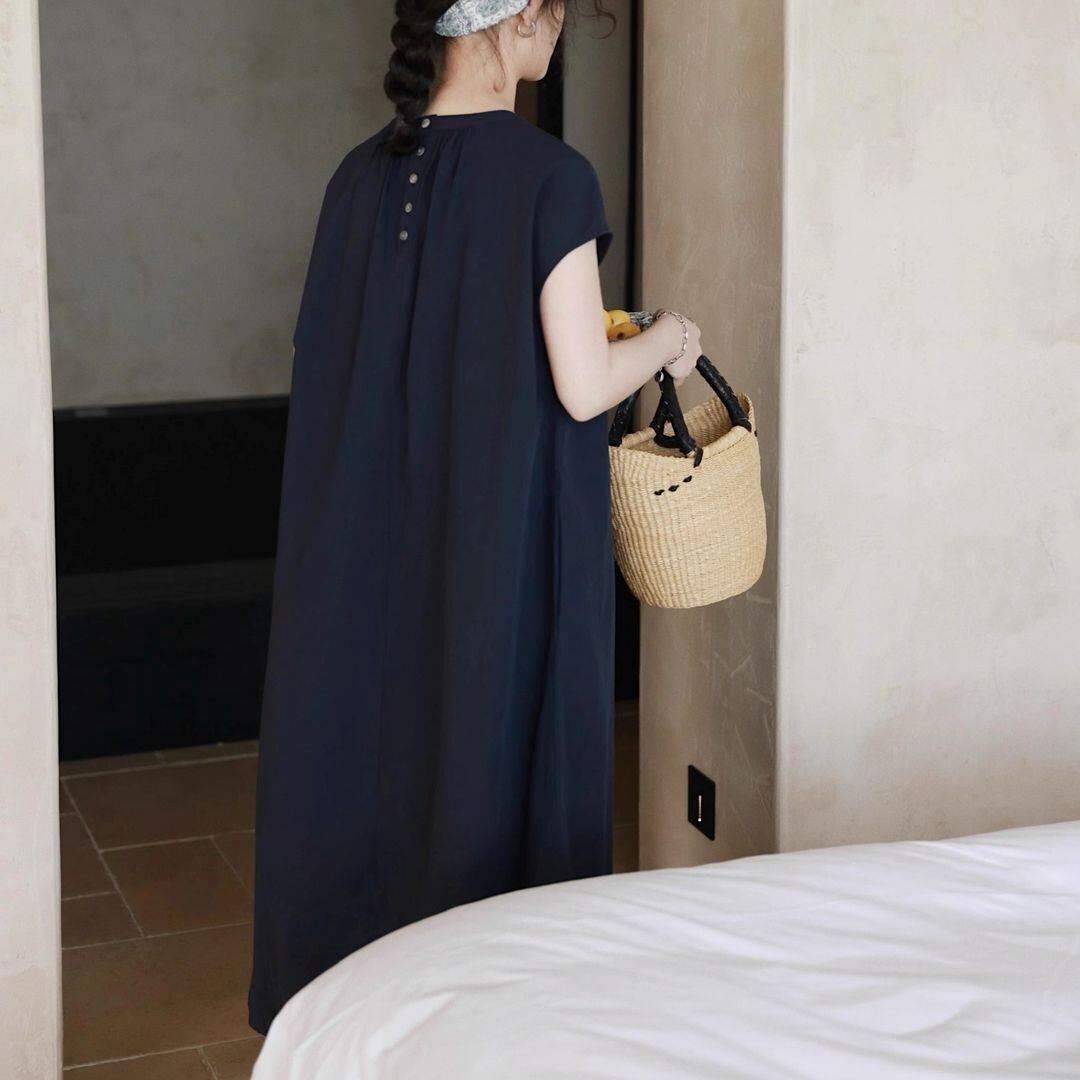 バックのボタンがワンポイントのワンピース。