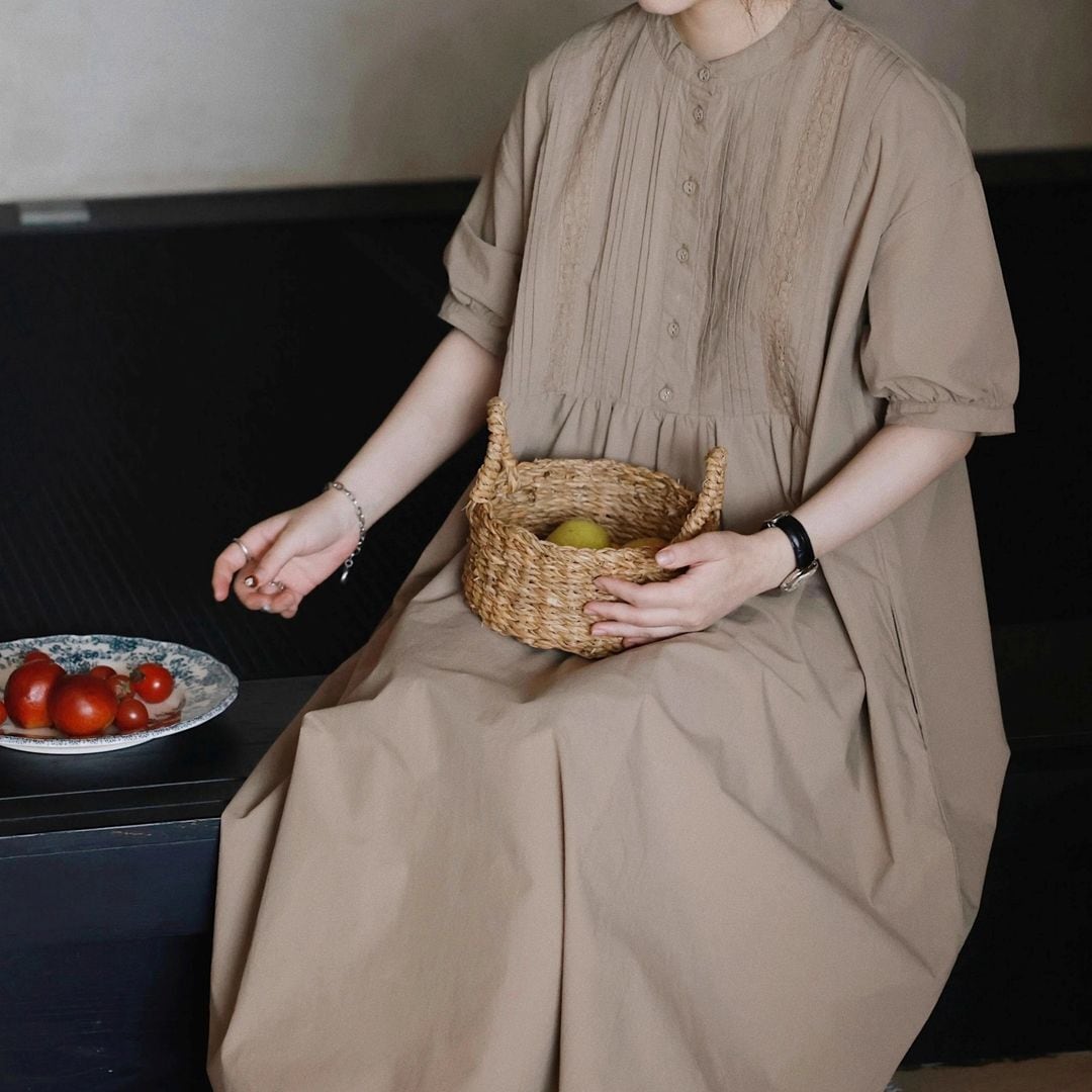 フロントのプリーツとレースが可愛らしいワンピース。