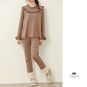 あたたかくて可愛いレースヘムのレギンス♪