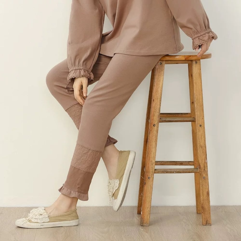 あたたかくて可愛いフリルヘムのレギンス♪