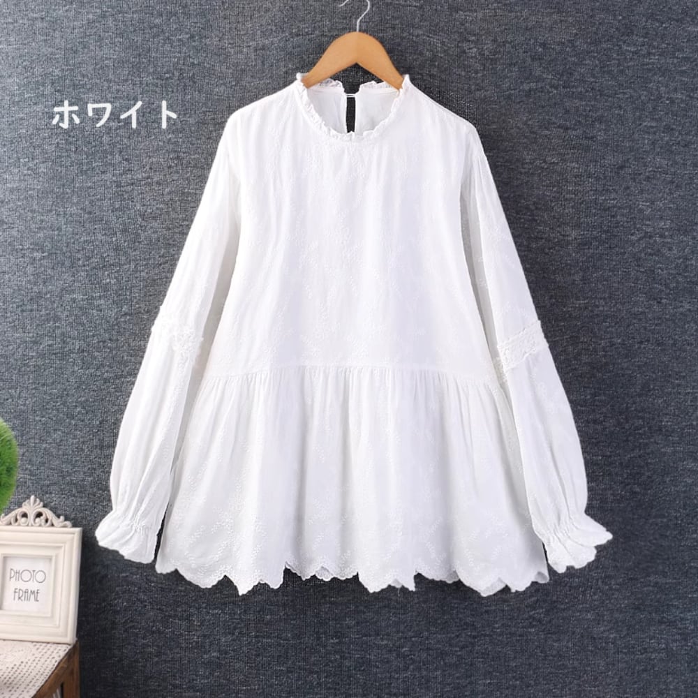 ロータスカラー 刺繍ペプラムブラウス Y 11104