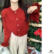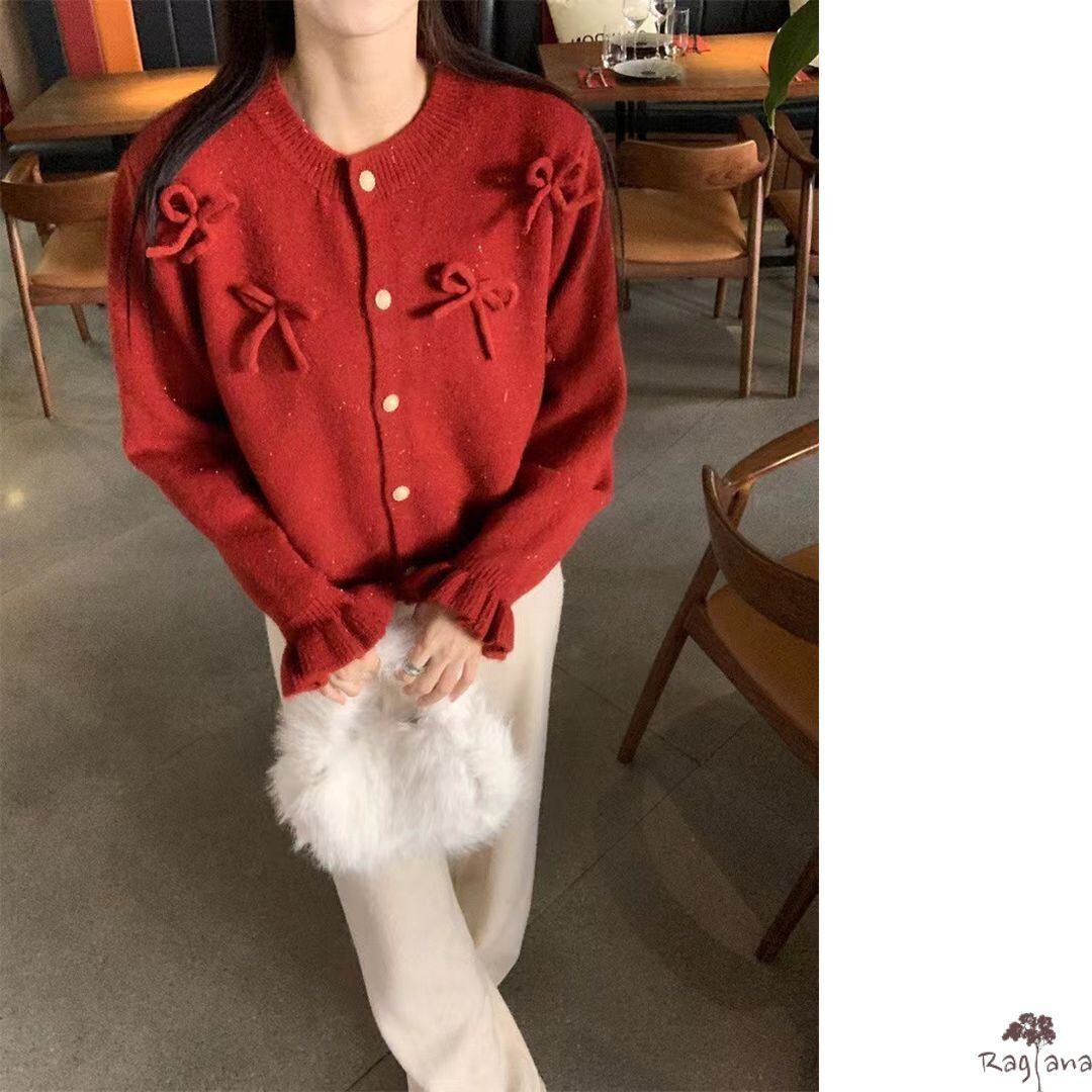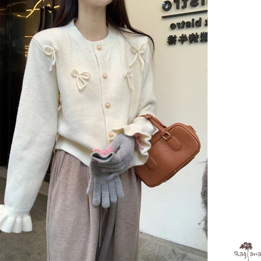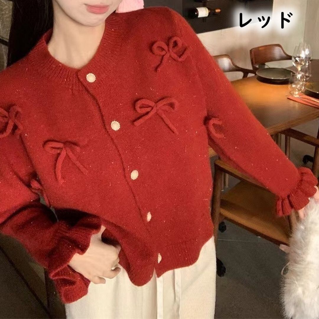 リボンモチーフが可愛らしいカーディガン。