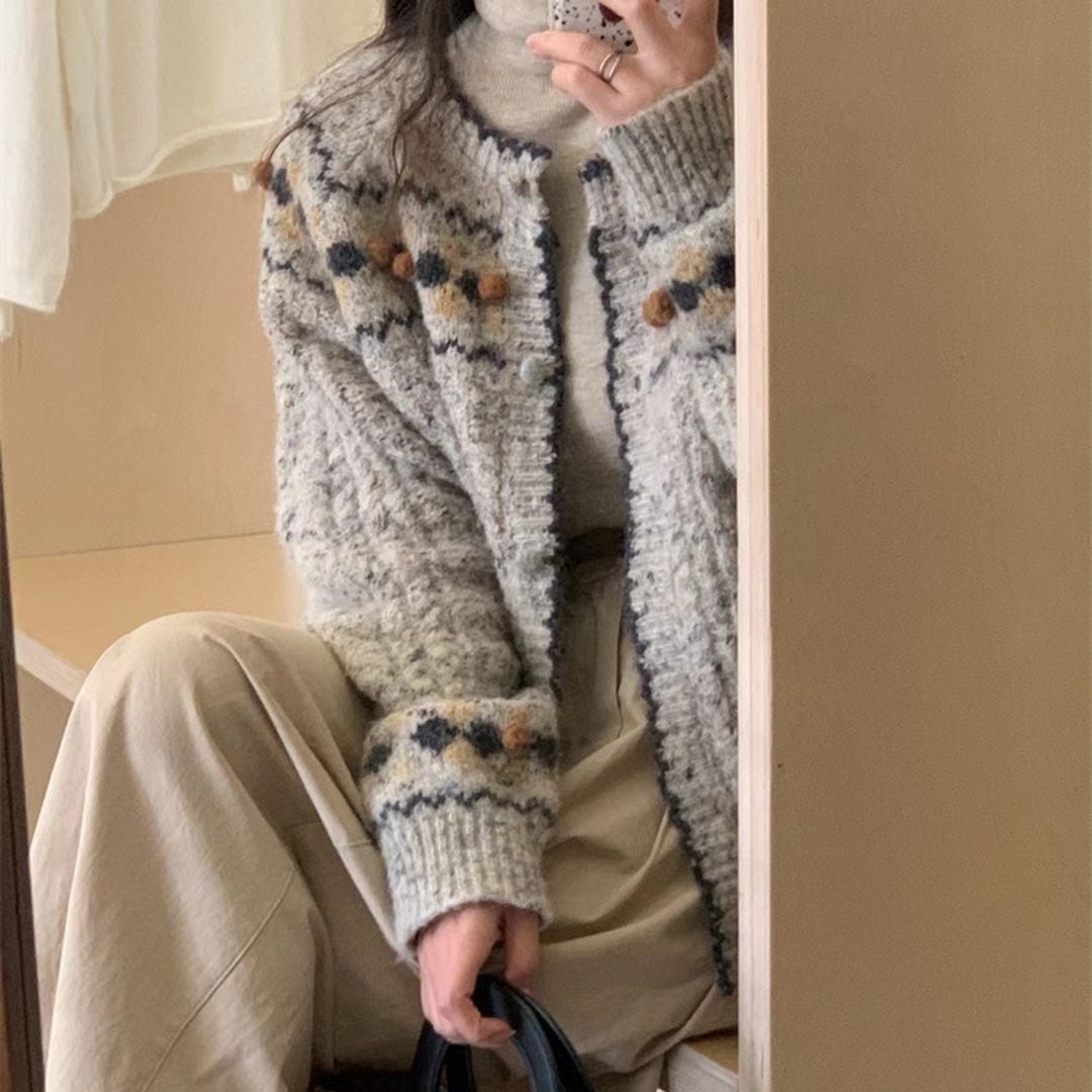 レトロな雰囲気が可愛らしいカーディガン。
