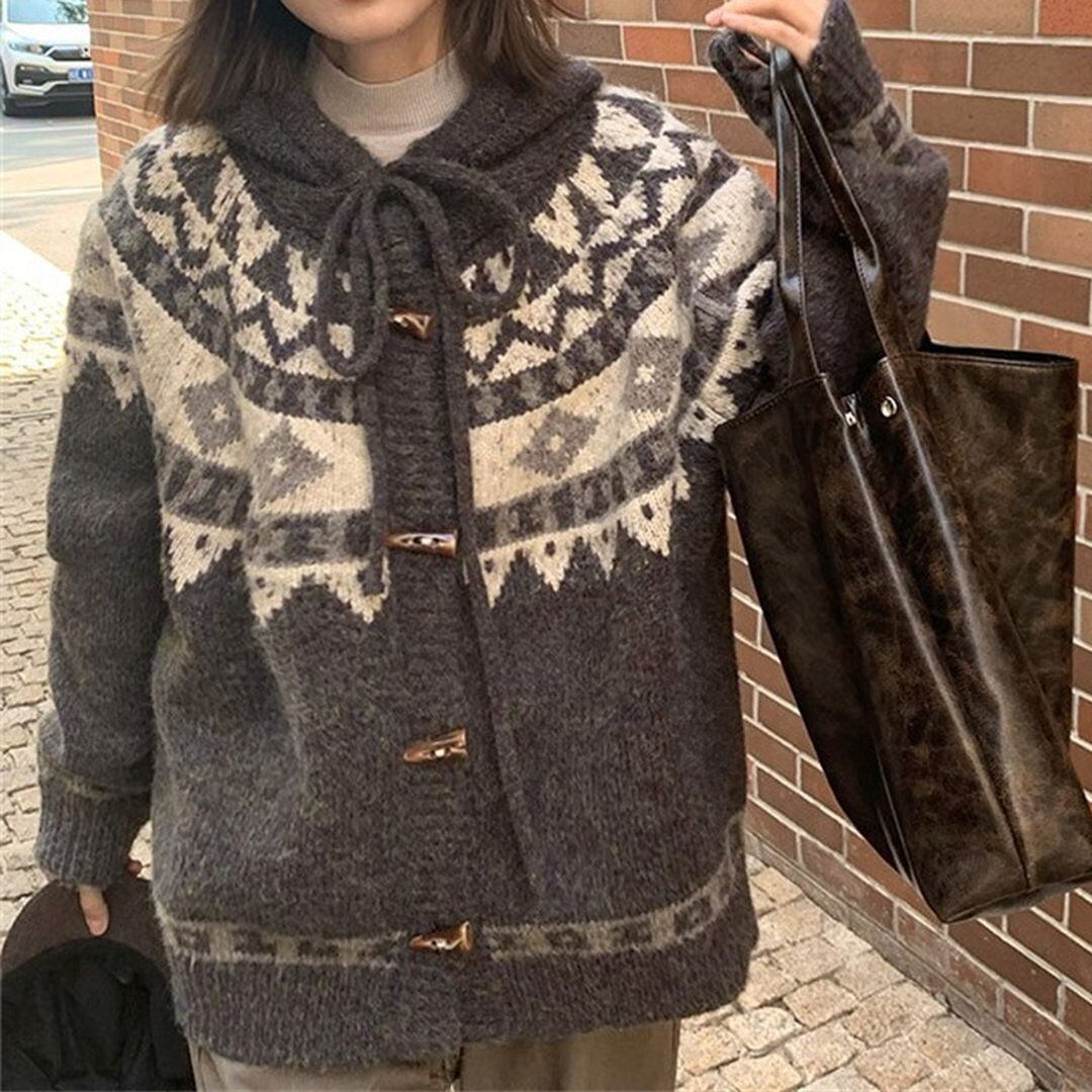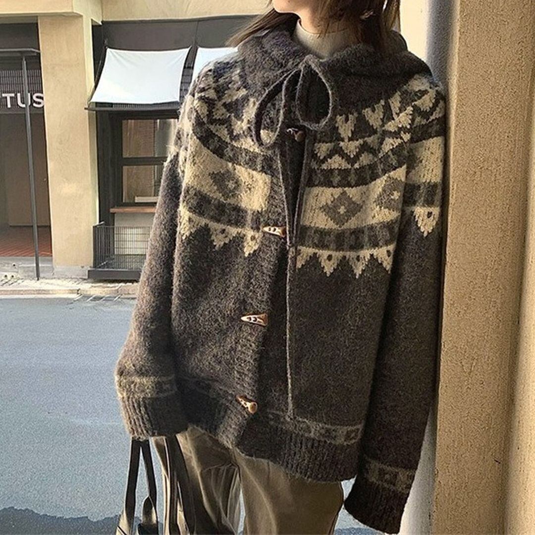 ノルディック柄が可愛らしいカーディガン。