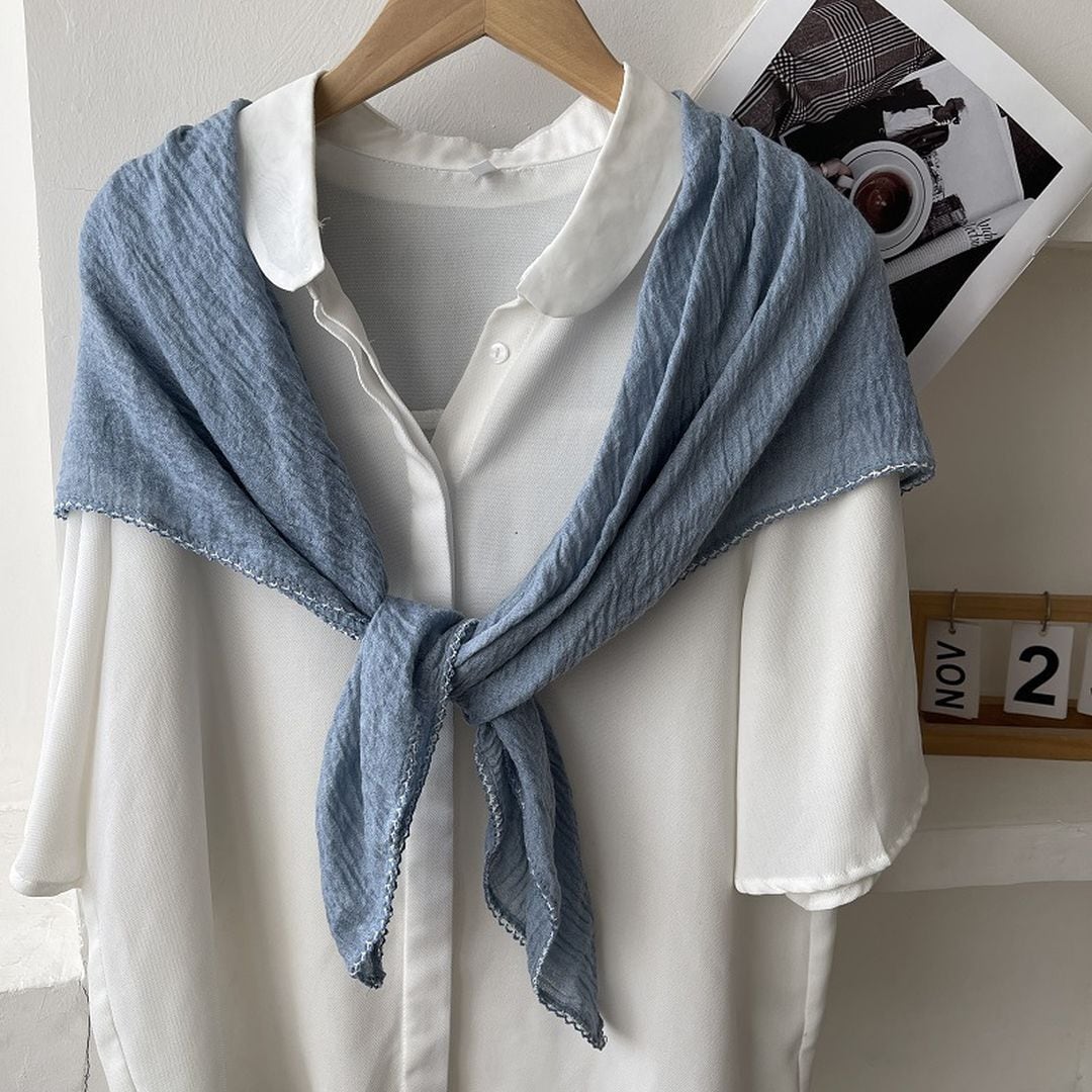 ベーシックなブラウスもおしゃれに仕上がるストールです。