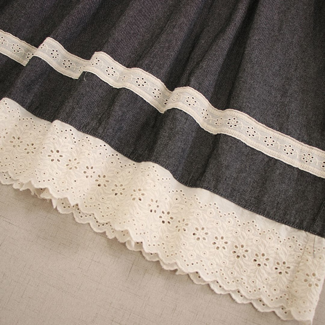 コントラストのあるレースが可愛らしいワンピース。