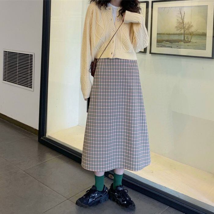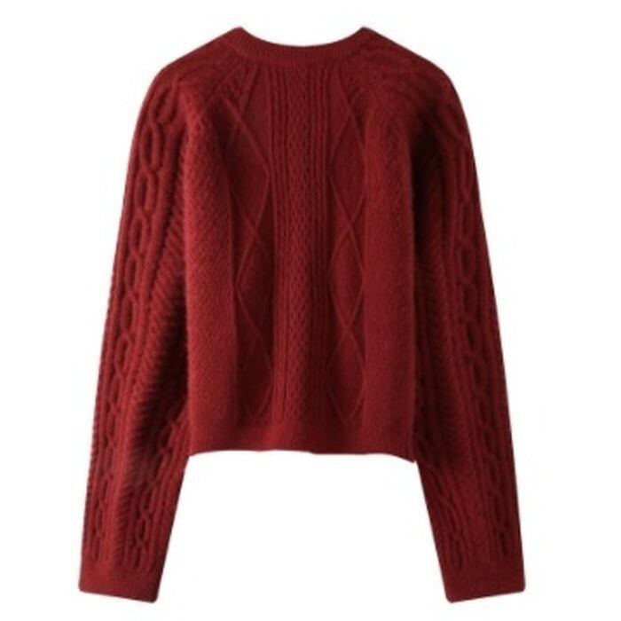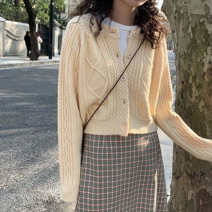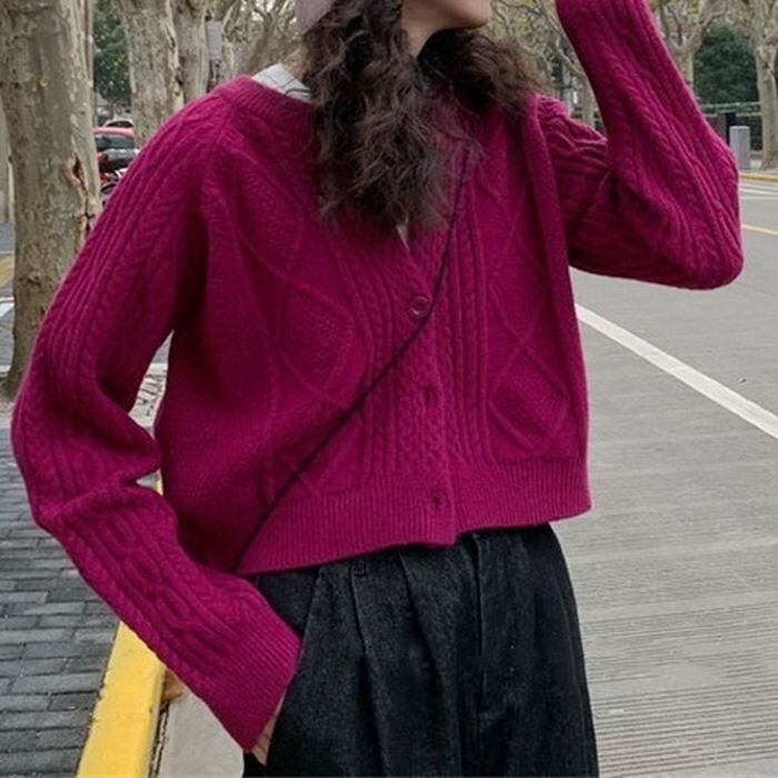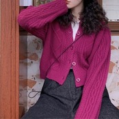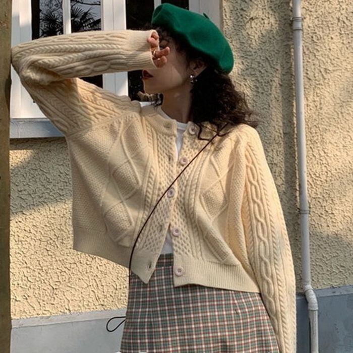 レトロな雰囲気のケーブルニットのカーディガン。