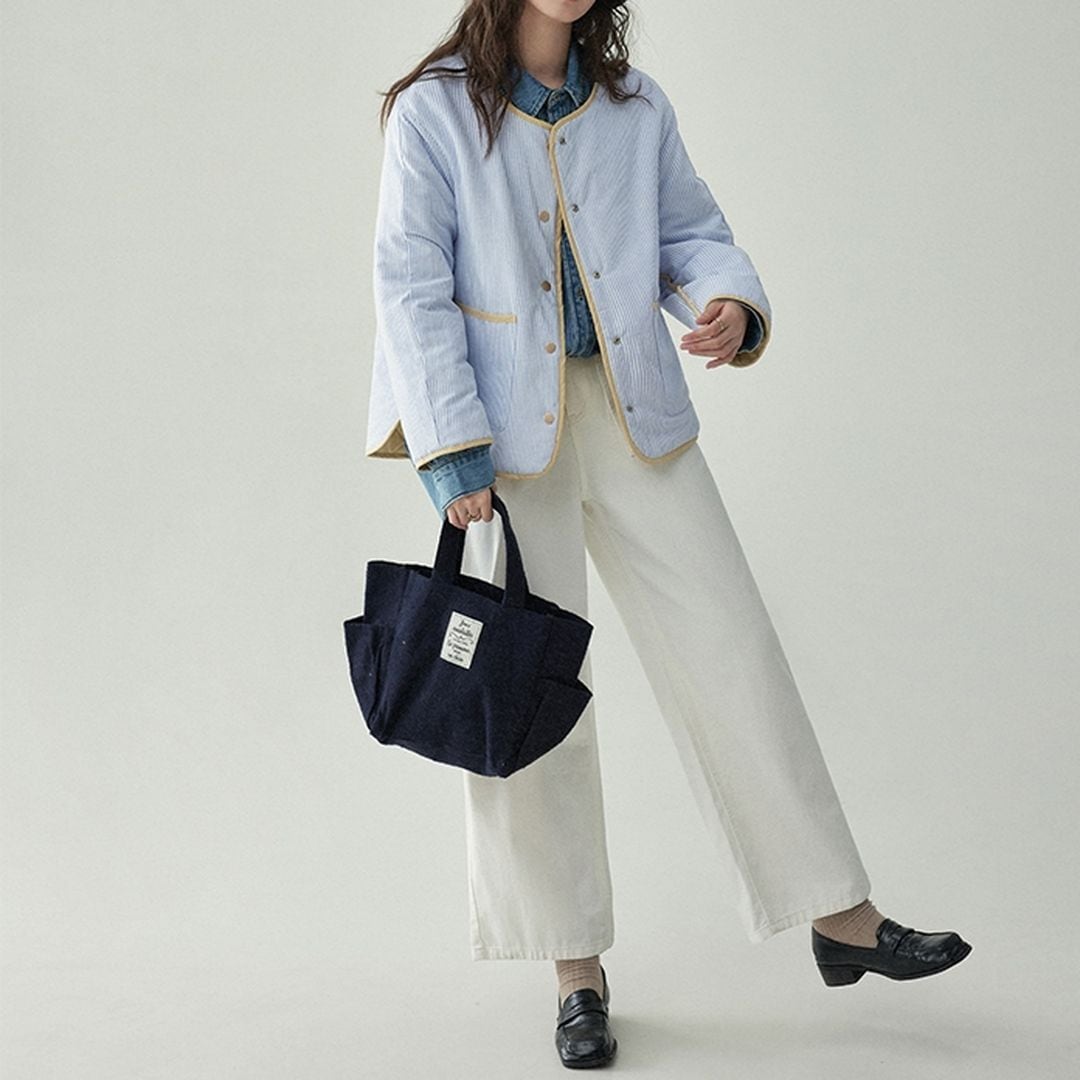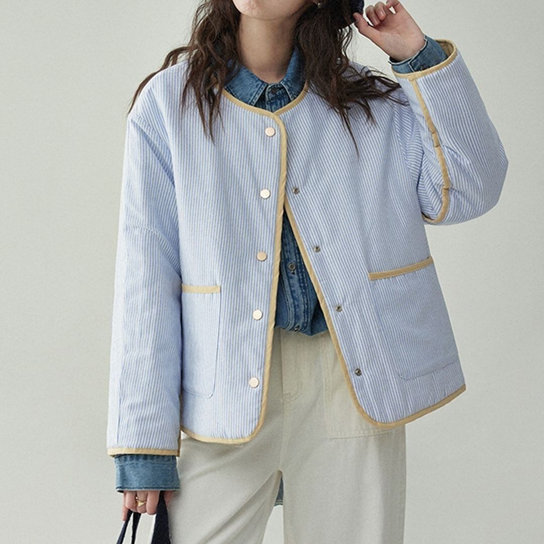 無地とストライプ柄のリバーシブルジャケットです。