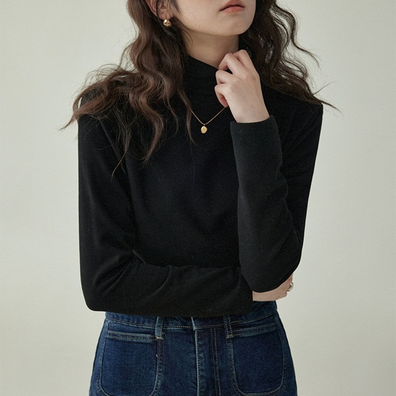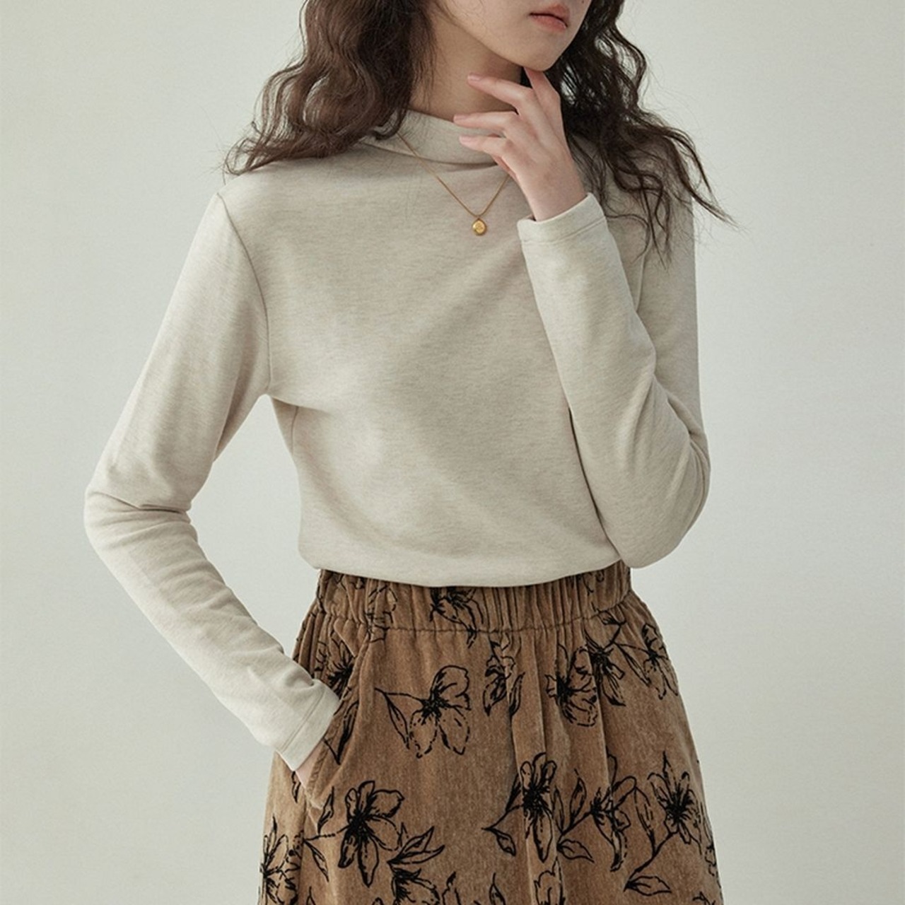 ニュアンスカラーのハイネックトップスです。
