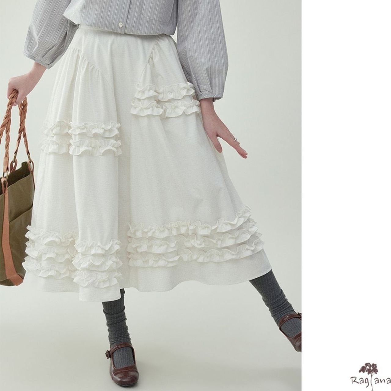 アシンメトリーなフリルデザインが可愛らしいスカートです。